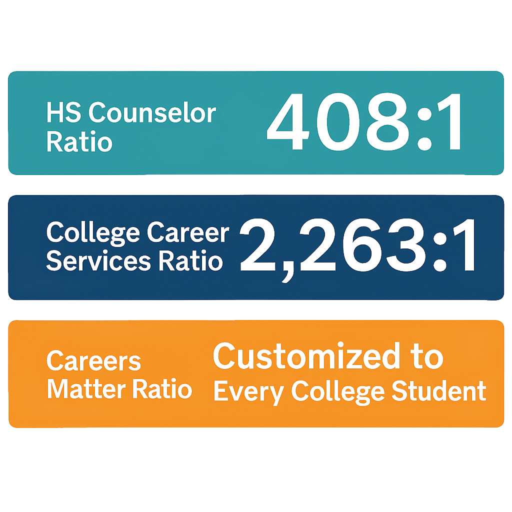 The average high school counselor supports over 400 students. College career advisors? More than 2,200.